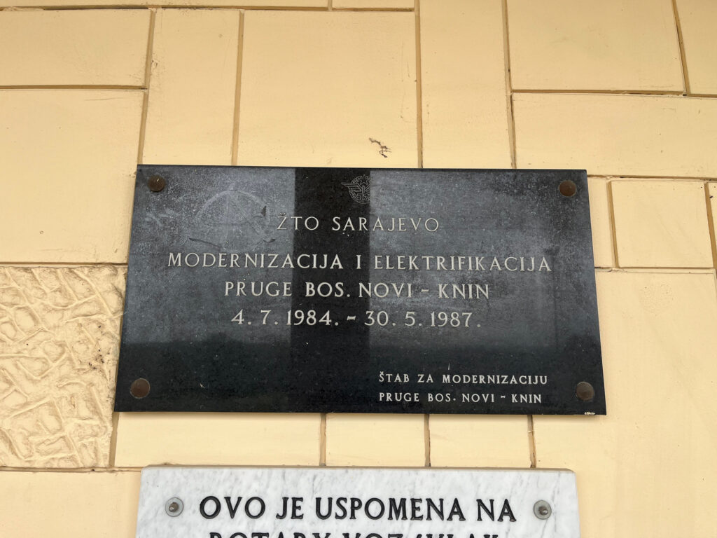 Gedenktafel zur Fertigstellung der Elektrifizierung Bihać – Knin – Plaque commemorating the completion of the electrification Bihać – Knin