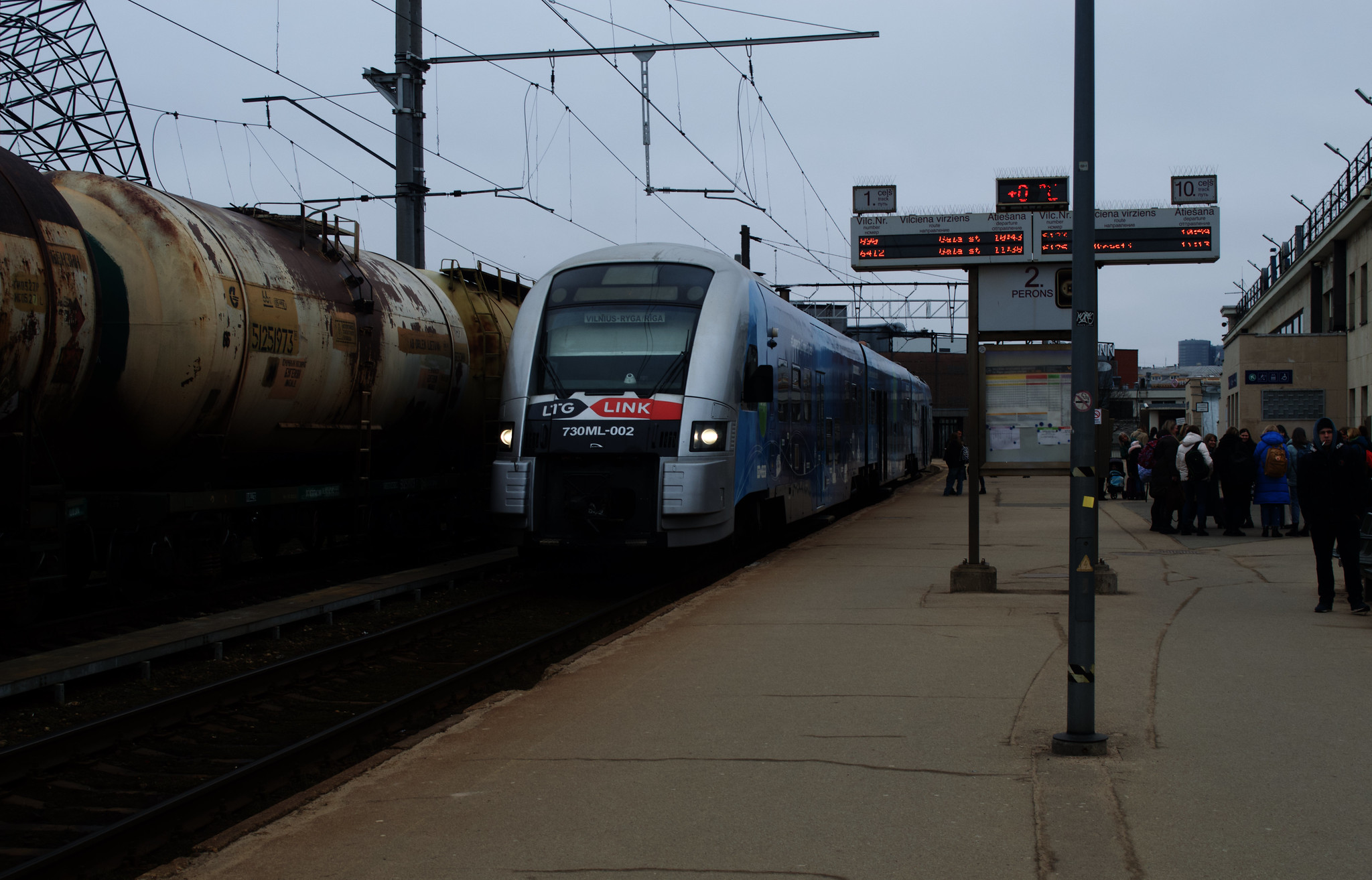 LTG Link Zug von Vilnius am Bahnhof Riga – LTG Link train from Vilnius in Riga station – Photo by Phil Richards – 08.03.24 Rīga Pasažieru LTG 730ML-002, CC BY-SA 4.0