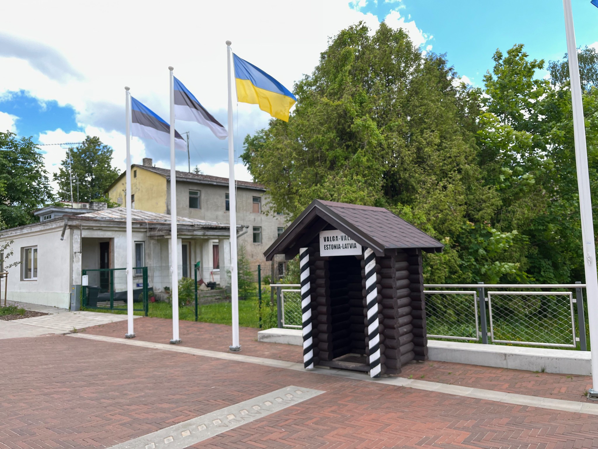 Stadtzentrum von Valga mit ukrainischen Flaggen – Town centre Valga with Ukraine flags