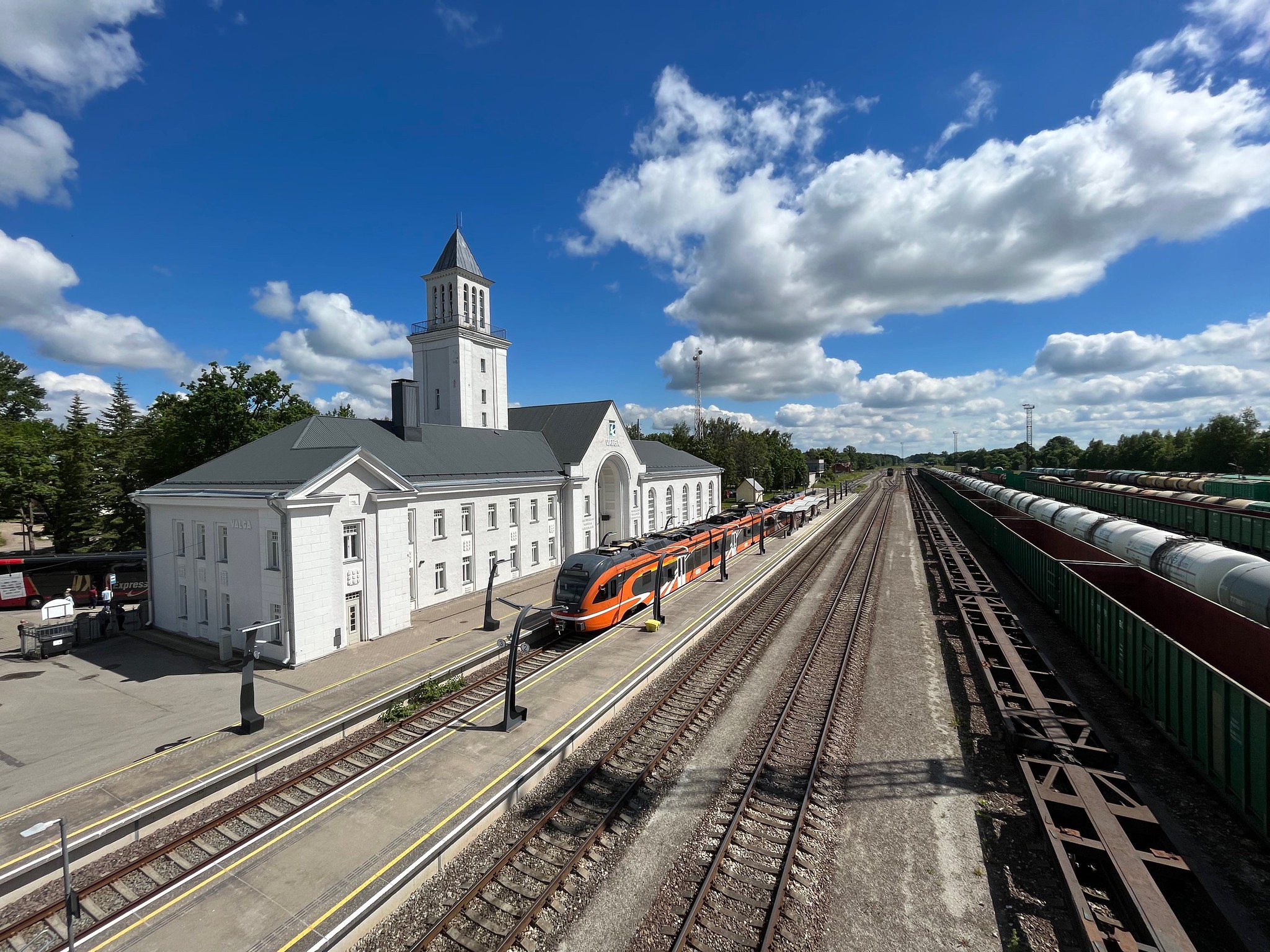 Bahnhof Valga mit Elron-Zug aus Tallinn – Valga station with Elron train from Tallinn