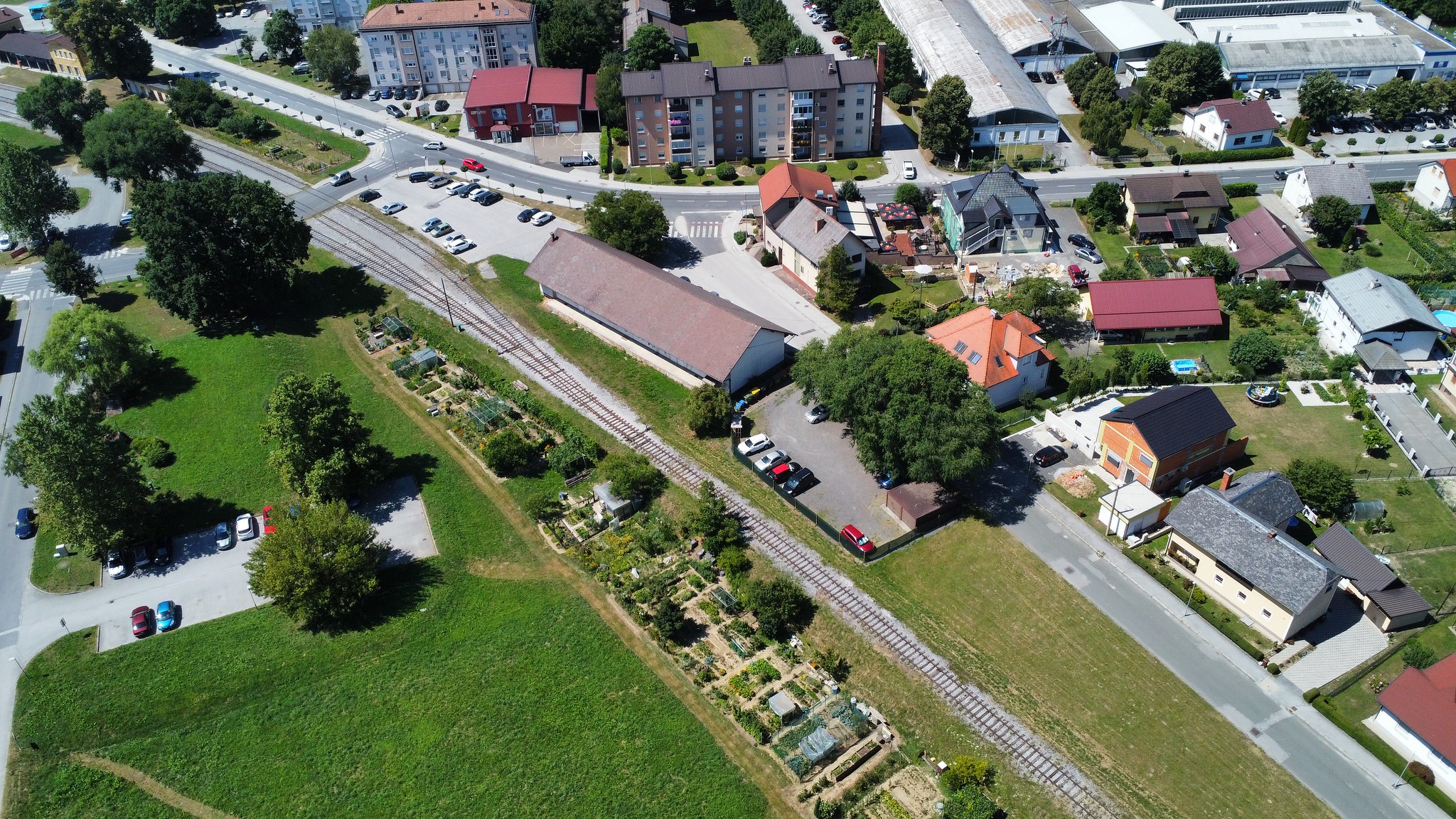 Gleise auf der slowenischen Seite der Grenze bei Gorna Radgona, neben ein paar Kleingärten – Tracks on the Slovenian side of the border at Gorna Radgona, next to some allotments