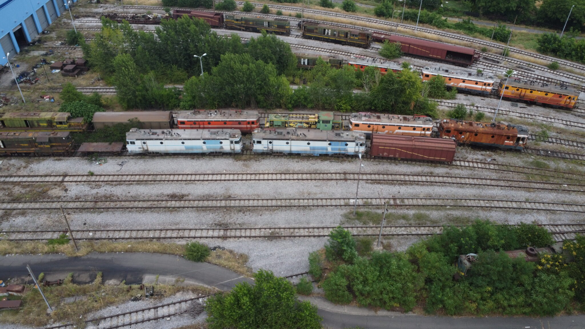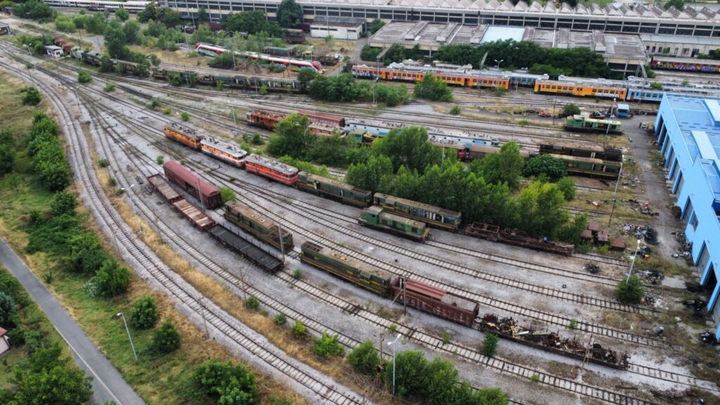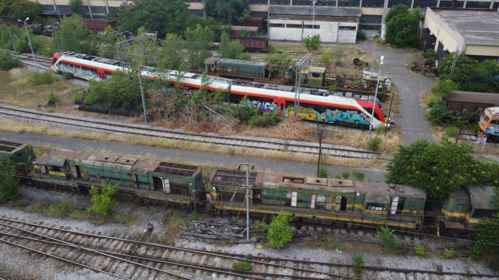 I took some pictures at MŽ’s main maintenance workshop in Skopje, and this bears this out – dozens of locomotives, EMUs and DMUs in various states of decay: