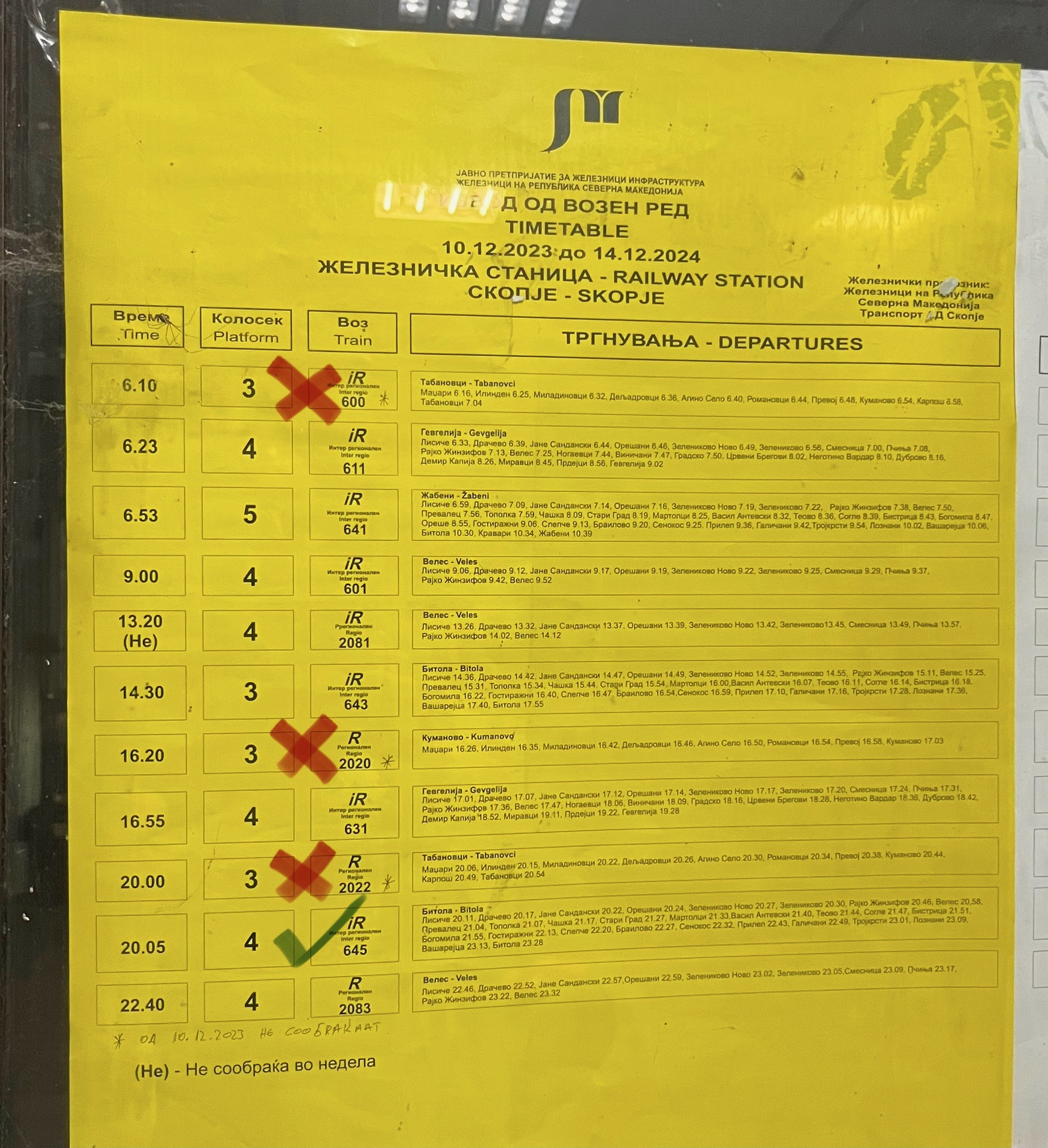 Hmmm, I think it is mornings to Skopje, evenings to Gevgelija – only 1 of the 2 timetabled trains runs. Can you let me know what happened?