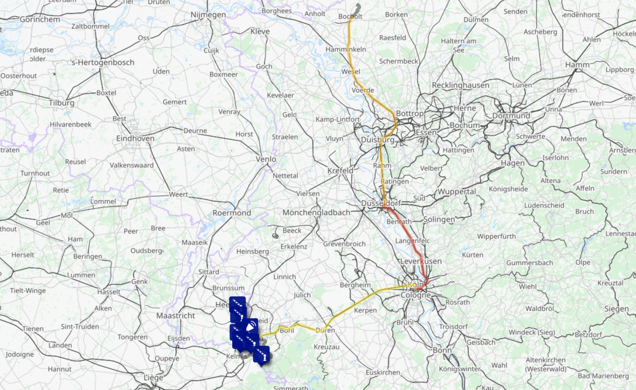 The day starts by bike – into Bocholt. Then keeps on the western side of the Ruhrgebiet, via Duisburg to Düsseldorf, Köln and Aachen. This was re-planned last minute due to a rail replacement bus service on the original route.