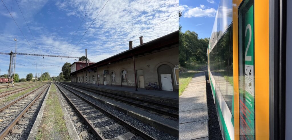 Why you should go there: The hulking border station at Zawidów feels like something stuck in time. The steps are ramshackle, the waiting room needs a lick of paint, and grass and bushes are growing all around. The track is still in use by the occasional freight train. If you follow the lane to Černousy it runs right next to the track at the border, and you can see where the wooden Polish sleepers change for the more modern concrete ones on the Czech side. Černousy station by contrast is tiny and sweet, as a little but impeccable railbus pulls up in front of the small building with apple trees lining the field opposite. Everything feels a little forgotten, but it is a charming little route for a day trip.