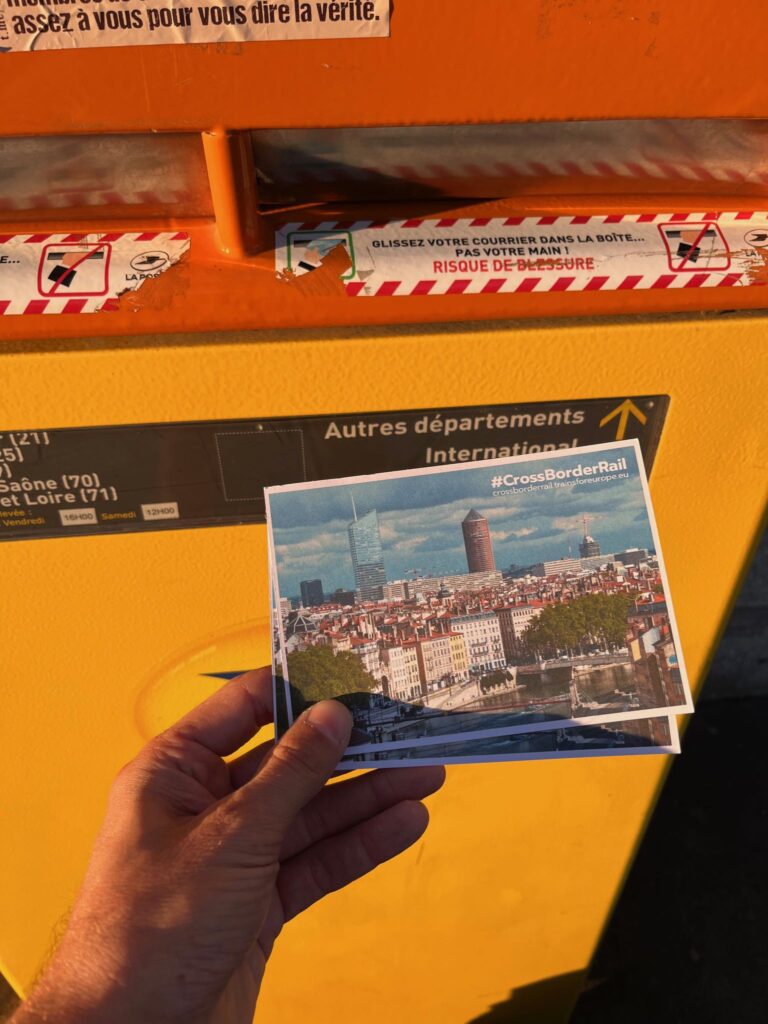 Each day European Commissioner for Transport Adina-Ioana Vălean would get a postcard, as would one of my supporters who had either helped with the crowd funding or had helped me somewhere en route.